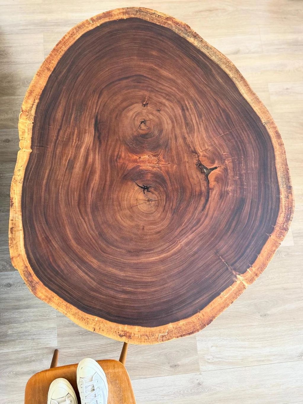 Nuestra mesa es básicamente una rodaja de madera Samán, igual lo habéis oído llamar por otros nombres como : Suar, Amber, Monkey pod, Cenízaro, Carabalí, o árbol de la lluvia…. Pero Samanea saman es su nombre científico.